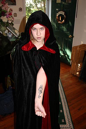 ![]() My new hot zone! ![]() Rorschach Test: What do you find most disturbing about this picture? ![]() My little death-eater. Long live Valdemort. ![]() Her "dark mark." ![]() I think the Redbird wielding hot sauce is the scary bit here, but E's glowing wand is pretty cool. ![]() Just thought I'd be myself this year. |